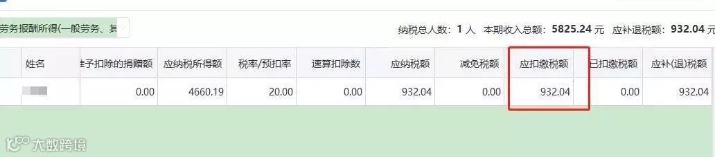劳务报酬所得预扣预缴税额=预扣预缴应纳税所得额×预扣率-速算扣除数=4660.19×20%=932.04元
