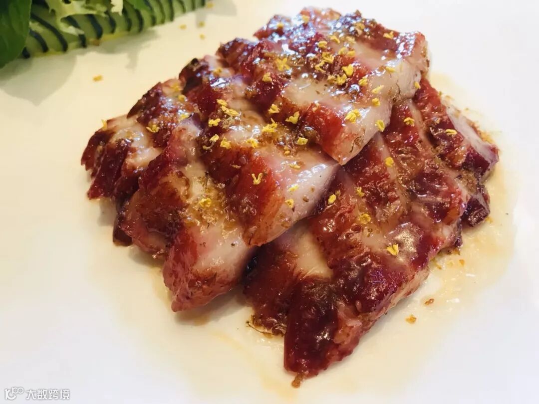 叉烧作为广东烧腊界当之无愧的“大哥大”,半肥半瘦的叉烧最好吃!当最好吃的半肥瘦叉烧遇上香香甜甜的桂花,意外地碰撞出不一样的火花。叉烧披上了小清新的外衣,透着桂花的清香清甜,内里却依然是那块广东人最喜爱的叉烧肉,肥肉瘦肉5:5的黄金比例,咸香可口,这味道上的二重奏真是无与伦比。