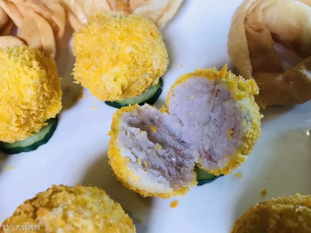 新鲜的金丝菊只取其花瓣切碎,拌入剁好的鱼松当中,再经过大厨的拥有深厚内力的双手不断摔打,鱼肉产生了丰富的胶质,捏成一个个大小相当的球,放入滚烫的热油,炸至外表金黄。咬开金球,酥脆的外皮加上透着菊花清香的弹牙的鱼肉,两种口感在牙齿的咬合之间,形成了曼妙的感觉。