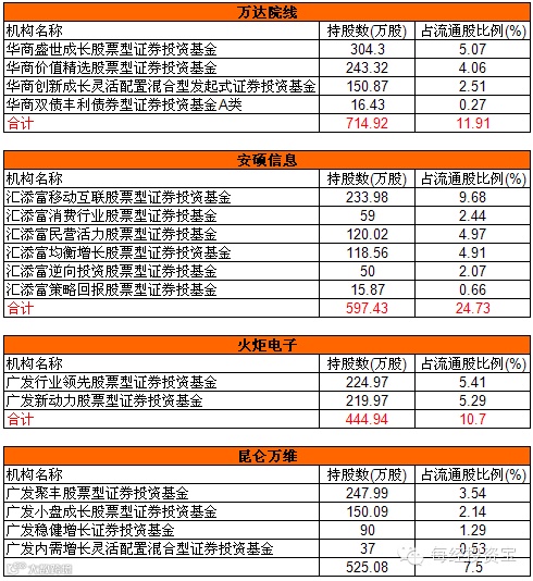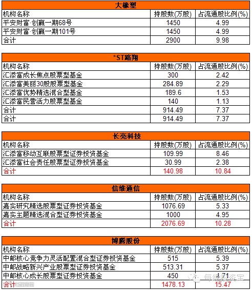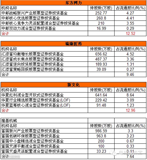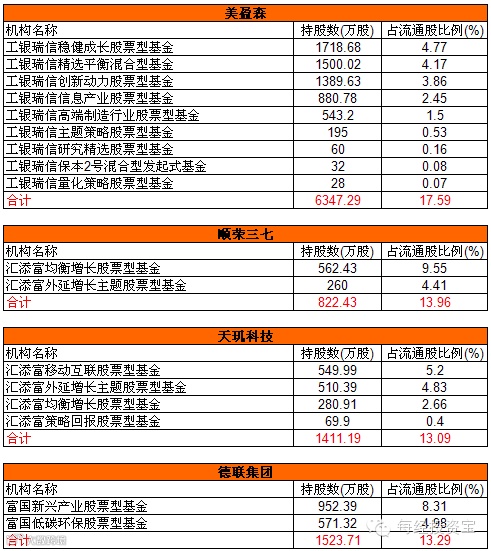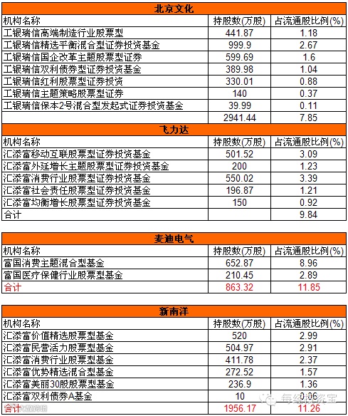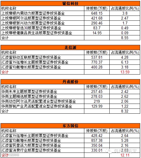 小宝特此整理了单家基金公司持股集中度较高的个股,名单如下: