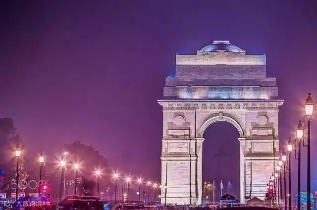 德里印度门是德里的一个城市地标,新德里和旧德里的分界线,左面古城,右面新都,传统与现代区分,贫穷与富裕区分。德里是一个城市两个世界,贫富差距特别特别大。晚上印度门的夜景也是美美哒。