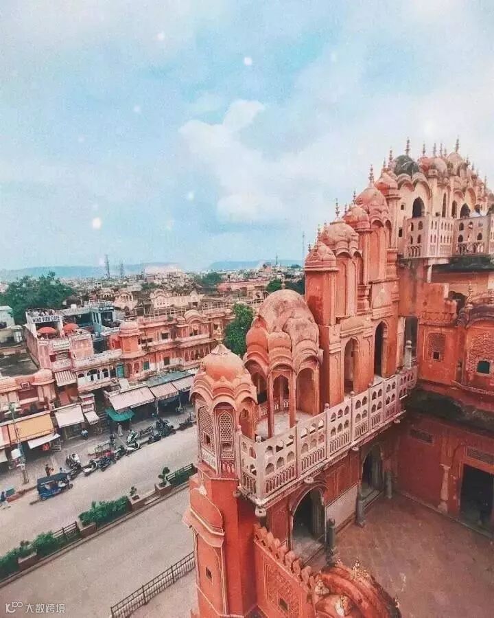 斋普尔是一座很有诗意的城市,也有一个很有诗意的名字——粉红之城。斋普尔全城一片粉红色,不但屋顶、墙壁,一律粉红色,连女性的纱丽也偏爱粉红色,比其它地方浓艳。