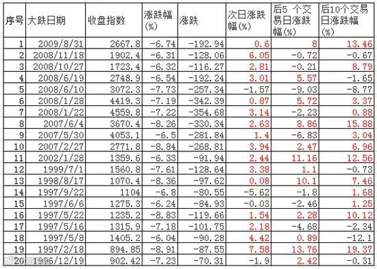 历史统计数据显示,在1996至2009年间,沪指曾有20次下跌超过6%,次日上涨概率为8成,仅4个交易日出现下跌。