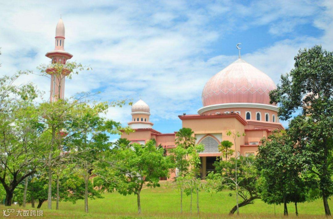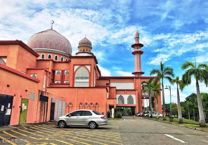 清真寺主体建筑有四分之三建在水上,外观粉红色,有异于一般的蓝色或绿色,因此又称"水上粉红清真寺"。可同时容纳一万多人做礼拜。它分为上下两层,二楼供四千名女子专用,楼下为八千男子使用。