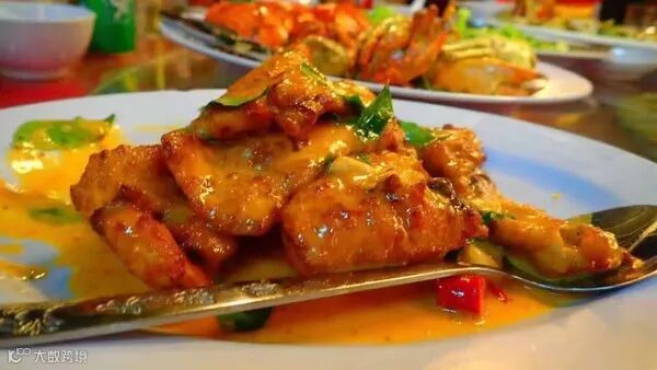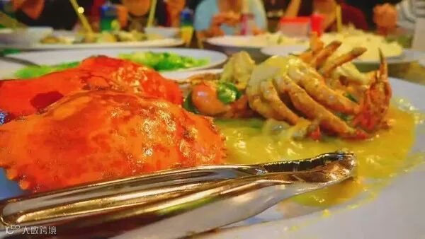 咸蛋黄炒蟹、奶油虾、绍酒蒸象鼻螺、青龙虾刺身、椰子布丁、橘子冰、沙爹,还有果香浓郁的榴莲雪糕……嗝~