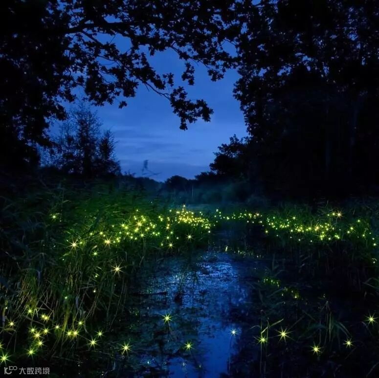 周围都是一闪一闪亮晶晶的夏夜精灵,浪漫不言而喻。