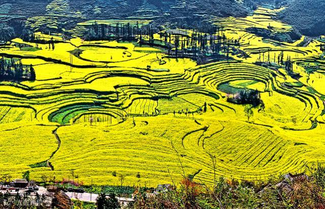 罗平80万亩油菜花竞相怒放,流金溢彩,绵延数十里。