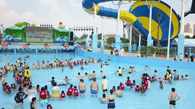 造浪池中心的舞台每日为游客呈现精彩绝伦的风情表演,游客可在清凉的水中近距离感受震撼的精彩演艺!