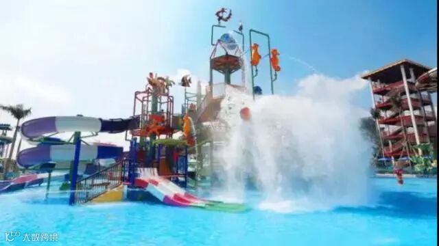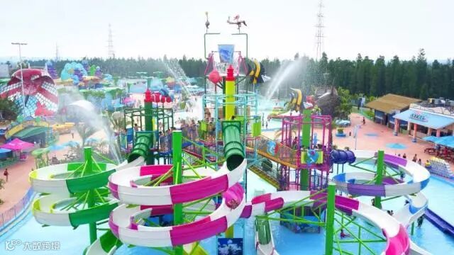 大水寨集合了多种水上互动游乐设施和玩水项目,造型各式的滑道及丰富多彩的喷水设施汇聚于此,水从高处大水桶倾泻而下,无论大人还是小孩都能在这尽情感受夏日的别样清凉,是老少皆宜的玩水天堂。