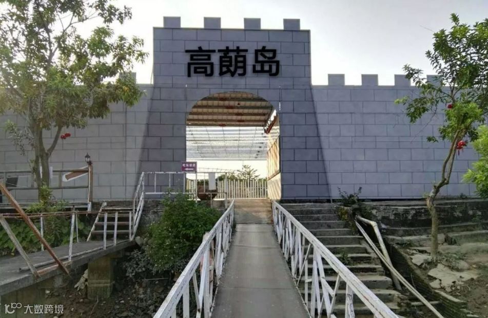 岛屿四周江水环绕、渔艇适时耕作;一渡浮桥从停车场与岛连接,也是陆地唯一的骑行通道;远处的百足山匍伏而过、岸上的碉楼被青竹林簇拥着;江面如镜,晚霞倒映入水中,环岛绿道绕,树上成群小鸟争鸣。
