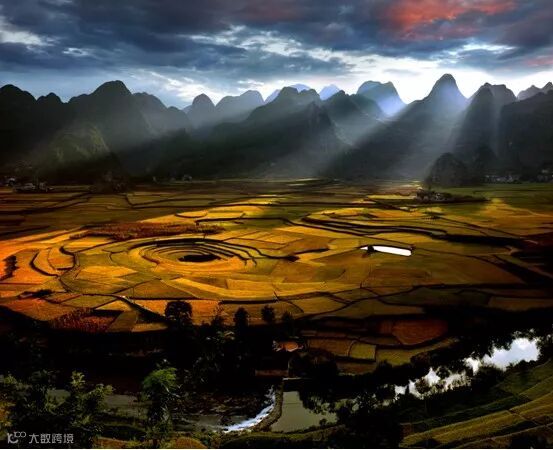 “奇峰儒林,田坝似锦,河水如带,村寨错落”
