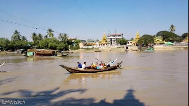 需要乘渡船,沿徙可以看到丁茵大桥和具有浓郁殖民色彩的丁茵小镇,以及田园和绿树丛中点缀的缅式高脚茅屋。