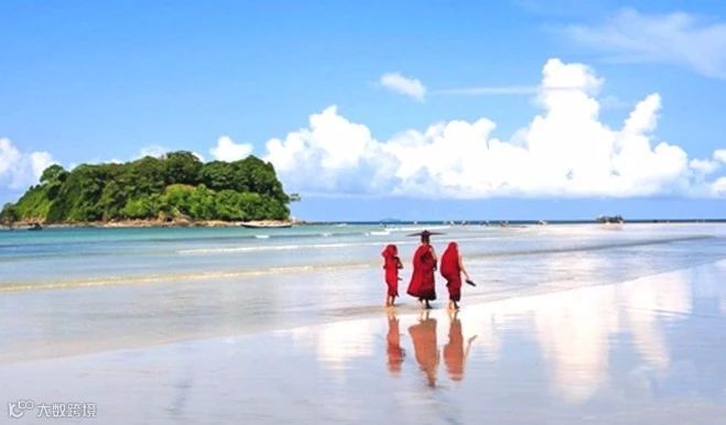 缅甸并不是只有佛塔,其西南部的处女海边圣地,维桑海滩,连绵15公里,为缅甸之最,海面上只停泊着两三只船。