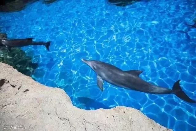 如果想近距离观赏海豚,还可以顺着楼梯往下走到玻璃前观看。
