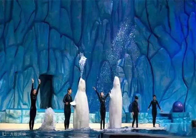 白鲸剧场可以看到憨态可掬的白鲸表演,在动人的音乐伴奏和训练员指挥下,