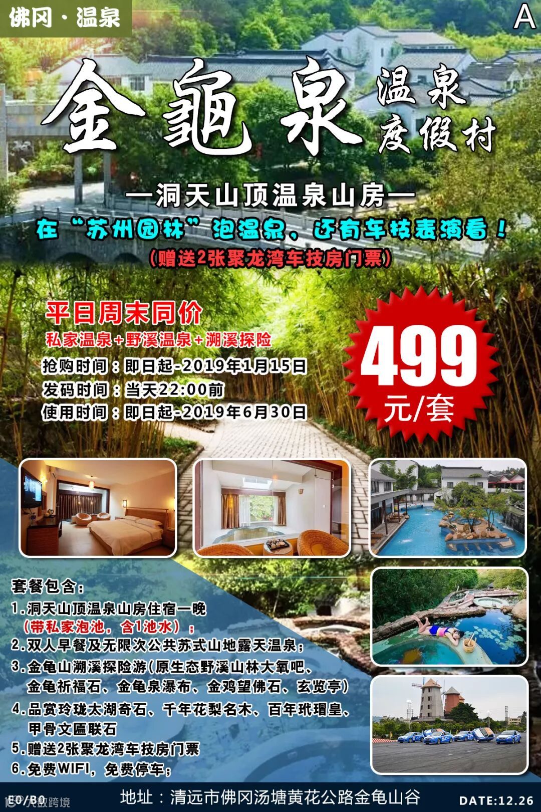 酒店地址:广东省清远市佛冈县黄花湖温泉度假区金龟山谷