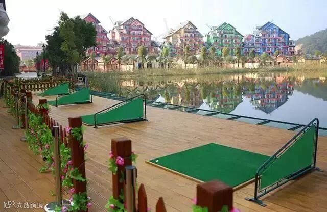 高尔夫:习惯了宽阔无人大草地上的高尔夫,现在试试新鲜的湖畔高尔夫和推杆果岭练习场,在美丽的五彩房屋和一片湖光绿景中,轻轻的挥杆,别有一番情趣。