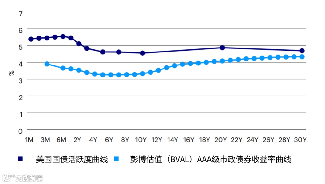 图1:美国市政债券收益率曲线vs美国国债收益率曲线