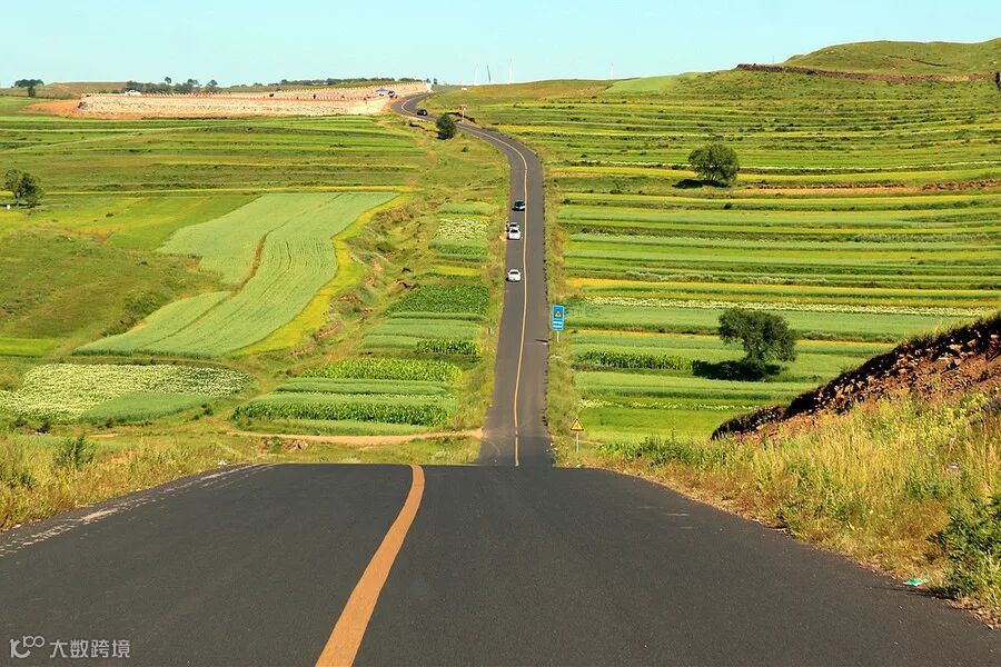 沿途沟壑纵横,每次上坡下坡、转弯,都有不同的视觉盛宴呈现,或蓊郁层林,或悠悠风车,或草甸牛羊,或梯田村舍,或烂漫花海……