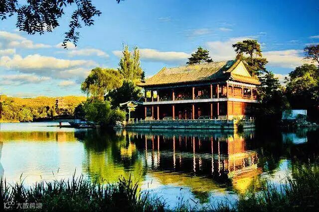 这座清代皇帝的私家花园面积甚广,这里有杭州西湖的苏白二堤、江苏的金山寺、杭州的六合塔、著名的河流-热河。