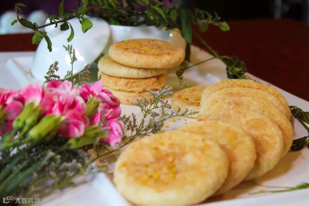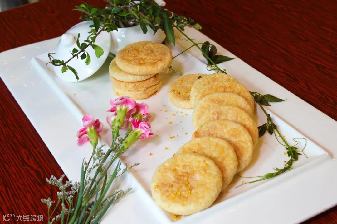桂花绿豆酥,又是一道狙击女心的菜式。桂花陈香扑鼻,令人神清气爽。咬一口花饼,唇齿间散发着浓郁甜美的香气,薄脆的酥皮,饱实的内涵,恰到好处的甜味,让人无法拒绝。