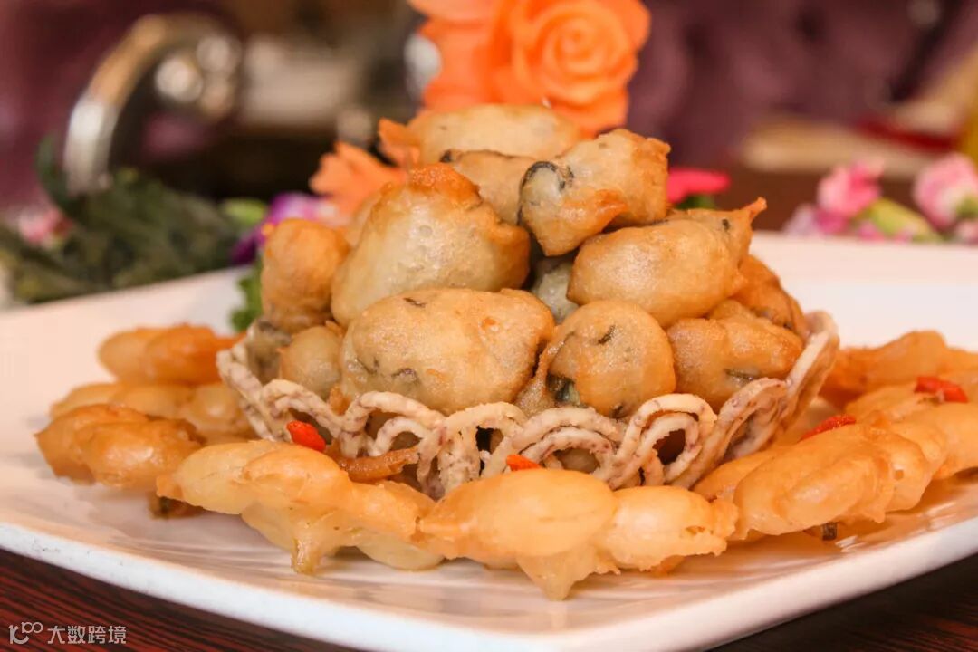 鲜蚝仔事先就已经用鸡蛋花煨养过,鸡蛋花也提前用糖水浸泡过,所以一入口不仅有鲜蚝仔自带的鲜味,还伴有鸡蛋花的香味。师傅对油温的控制可以说是无可挑剔,油炸后的鸡蛋花还能保持刚下锅时的立体感。鲜蚝仔的酥软,鸡蛋花的香脆,一口脆一口软,让人味蕾大开。