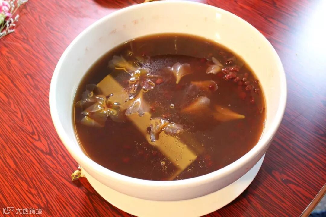 吃饱喝足后怎么可以不来一个饭后甜点呢?红豆沙就吃得多了,但用鸡蛋花来煮红豆沙还真的是头一回了。粒粒红豆个头饱满,用量实在,一勺舀上来全是红豆。入口既有红豆的甜,又有鸡蛋花的芬芳。香甜美味的它,还不赶快来pick一下吗?
