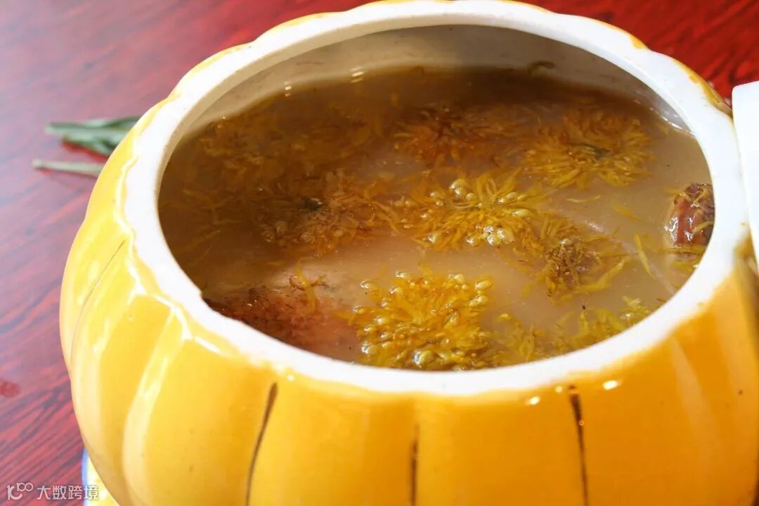 俗语说“饭前喝汤,胜过药方”,广东人対一碗靓汤的追求胜过一桌好菜。金菊花作为一种中草药,具有清肝明目,解气消热的功效。搭配新鲜放养野鸭,鸭肉肉质紧实,营养丰富。一碗汤下肚,既美味又养生。简直是炎炎夏日的首选靓汤。