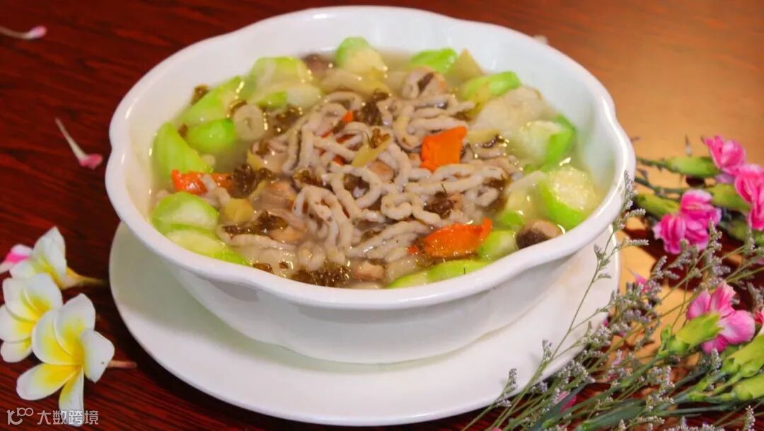 霸王花具有清热润肺,除痰止咳,滋补养颜的功效。经过精心熬煮的高汤味道浓郁,香气逼人。霸王花经过熬煮后变得软烂,十分容易入口。再加上蛋丝和火腿丝来提鲜,让这道菜的味道变得不再寡淡,老少咸宜。