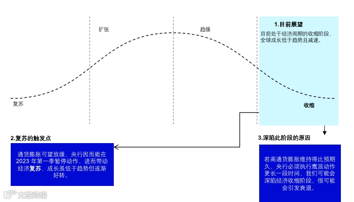 通货膨胀于 2023 年放缓,市场可期待 2023 年初停止加息,届时将进入复苏阶段,成长会低于趋势并逐渐加速。