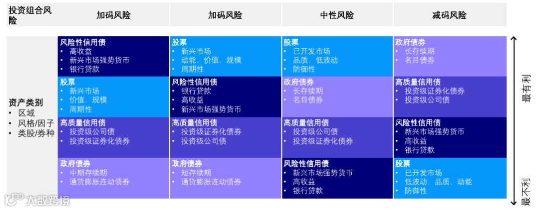 投资人若想掌握宏观与市场情况不断变化所带来的机会,可藉助有纪律的 战术资产配置投资方法,动态调整资产类别、区域、风格、因子和产业的风险暴露。