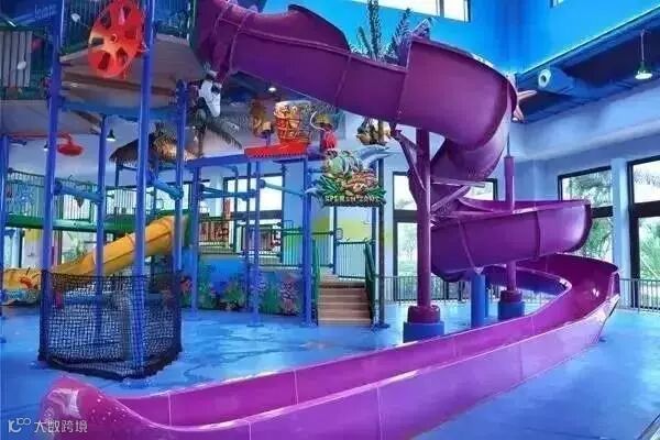 由国际知名的加拿大白水公司设计的室内水上乐园,最有玩头的就是三条曲线和直线滑道了。