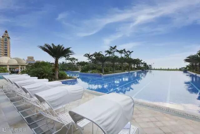 180度广角的一线海景+刺激好玩的5000㎡冲浪池,简直就是海滨亲水欢乐天地!室外50米标准游泳池面与海平面齐平,彷如置身蔚蓝海洋。