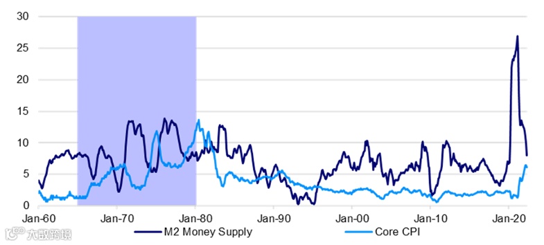 注:基于1960年1月至2022年4月的月度数据。阴影区为1965年1月至1980年1月。