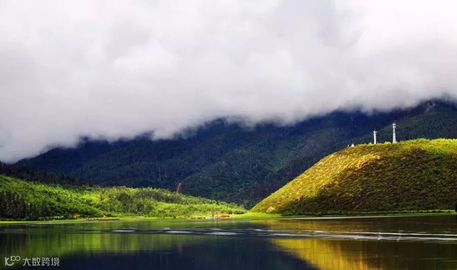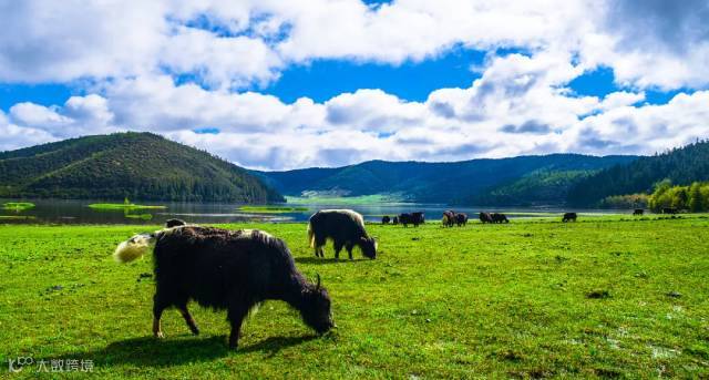 湖畔有个牛羊成群的牧场,充满藏区的生活情趣