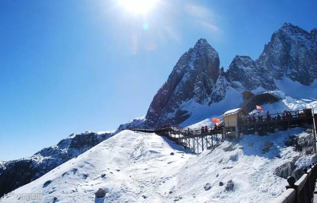 冰雕玉砌的玉龙雪山拔地而起,直插云霄,气势磅礴。
