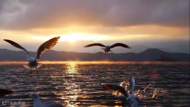 黎明,拉市海渐渐苏醒;东方破晓,暖暖的色彩如金叶般铺在拉市海的波光里,即刻间,天空和大地被橘红渲染,成为一幅古典的油画模样。