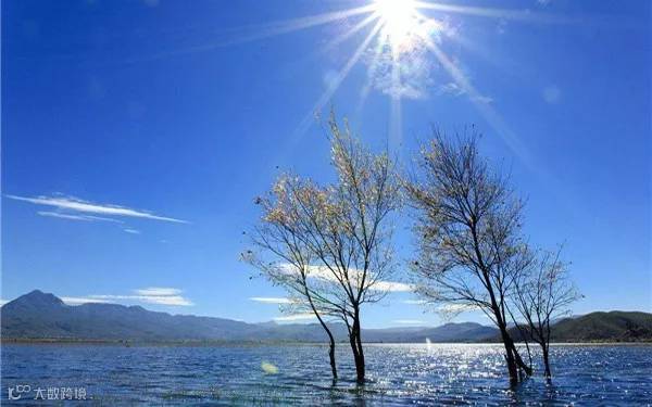 渐渐的,太阳露出了山顶,把还没有苏醒的容貌在拉市海的水面照耀,一眼万年。