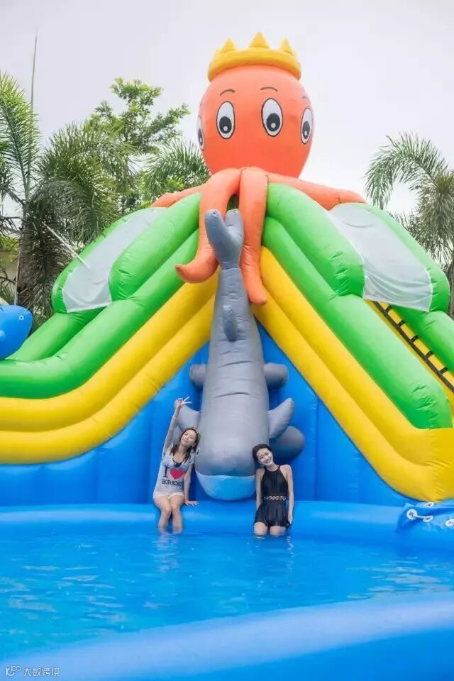 中心泳池旁有个可爱的大章鱼水上滑梯