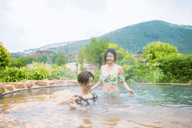 除了上面这些有养生温泉之外,这里还有很多“石头泉”,可以让我们坐在上面戏水和凹造型,看看这身后的风景,有山有水,简直一流!