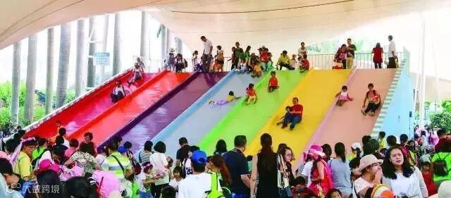 小朋友享受滑梯带来飞一般的轻松与刺激