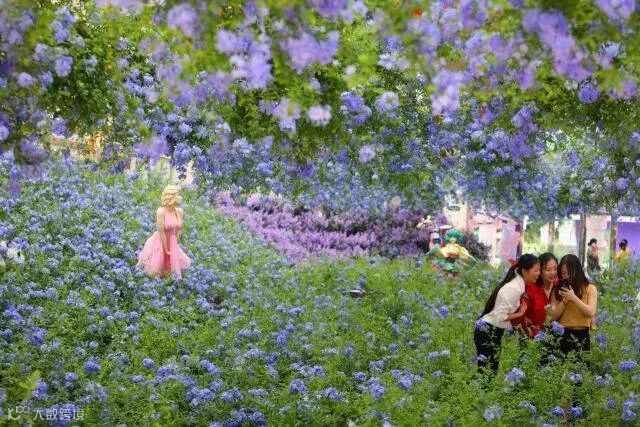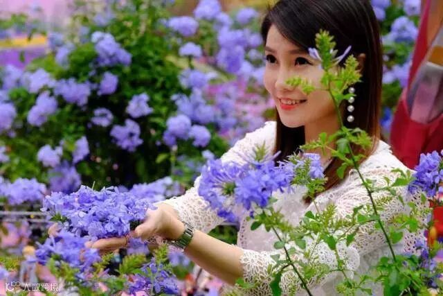 一簇簇淡蓝色的花朵开在翠绿的枝叶上