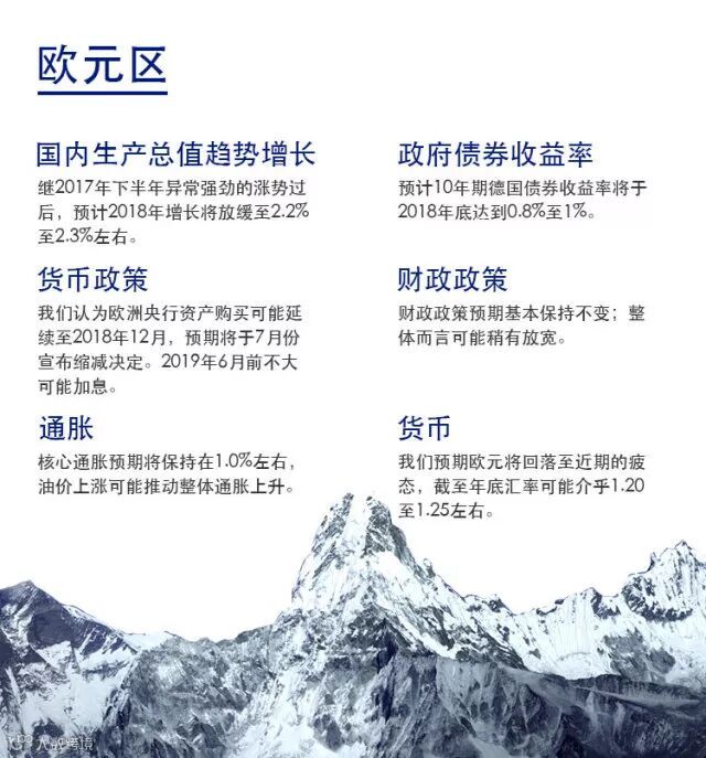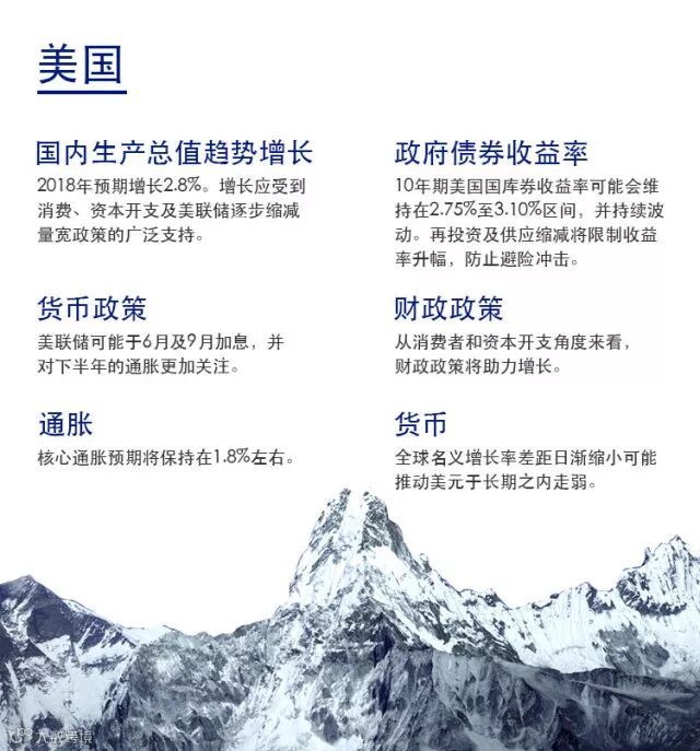 景顺环球固定收益团队认为,经济增长、通胀和金融环境等宏观因素的变动在很大程度上推动了市场的表现。了解宏观因素可帮助我们理解市场状况和有关利率、货币和信贷的价格行为。我们相信,宏观因素框架有助于优化投资组合的资产配置和风险回报状况。下表为我们对美国、欧元区及亚洲地区于2018年下半年的宏观观点及展望。