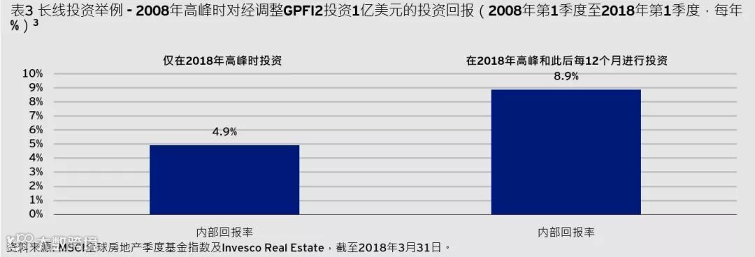 由于要成功预测市场时机很难。这些例子表明,不论周期性的起点如何,能够承受市场短期波动的投资者可保持一致的房地产投资部署,从而实现更高的回报。