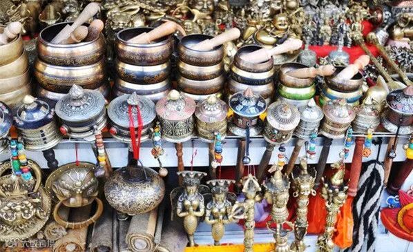 街上永远少不了朝拜的藏民,也少不了藏式店铺,售卖藏族服饰、工艺品,还有来自印度、尼泊尔等地的商品。周围有很多著名的藏餐馆。