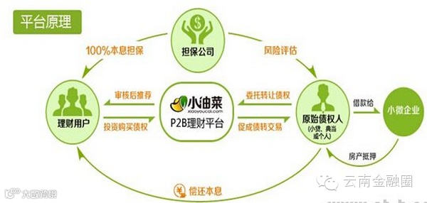 三、债权转让模式:小油菜理财、理财范,主要是和线下非银行类金融机构合作,如担保公司、典当行、小贷公司,由线下机构进行项目开发,形成债权后放到线上,平台负责二次风控并进行融资。