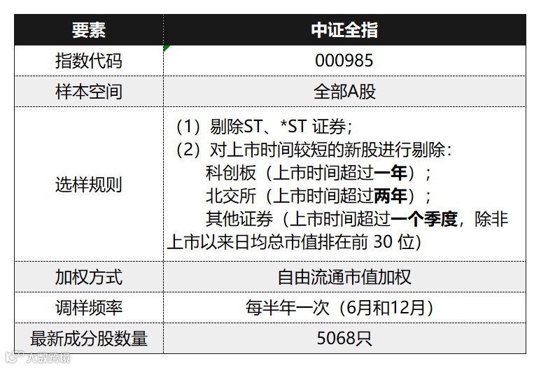 在具体聊这个问题之前,首先我们还是得了解什么是中证全指?下表列出了中证全指的指数编制规则: