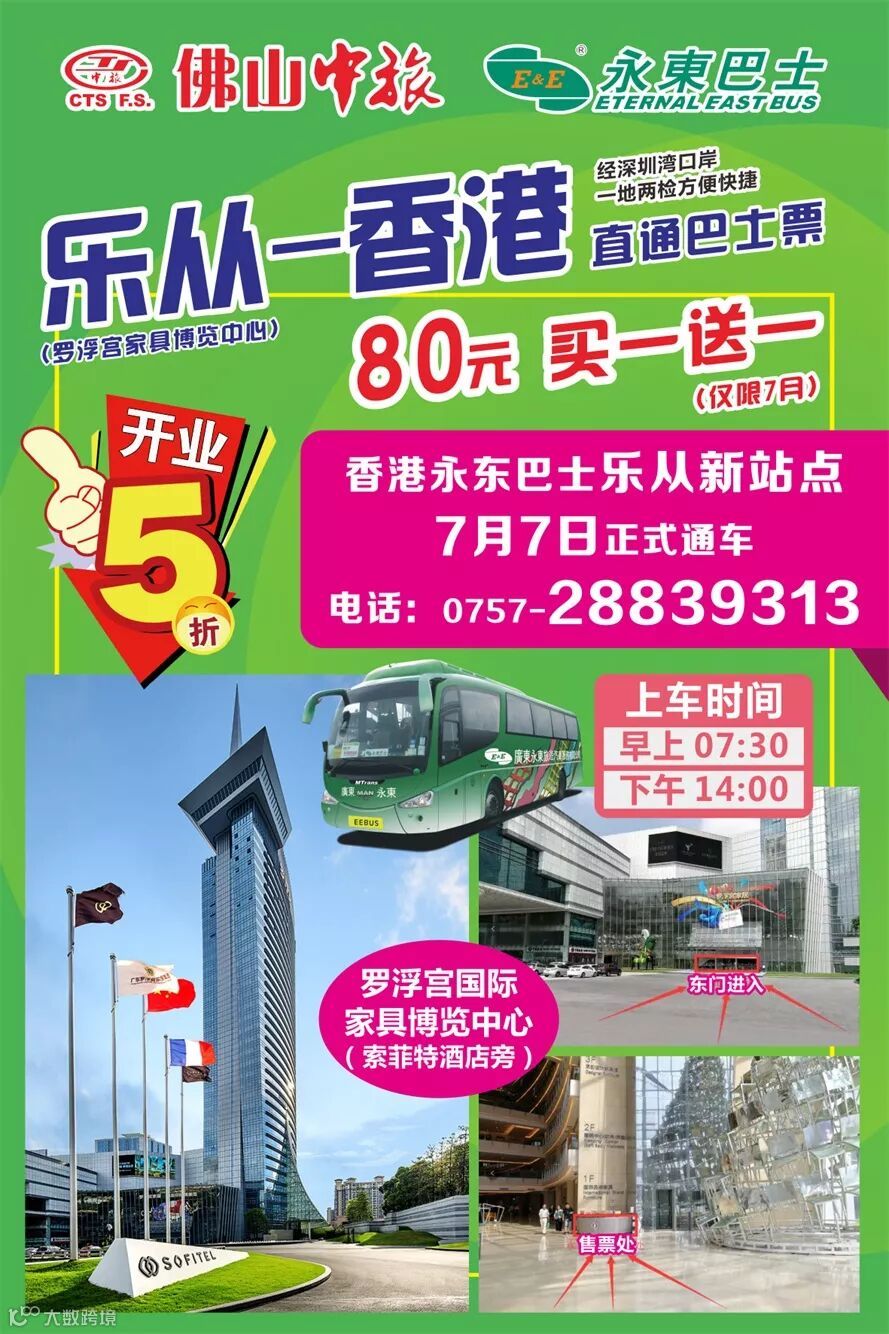 省一半!香港永东巴士乐从搬新站点啦!5折优惠送足成个7月 佛山中旅