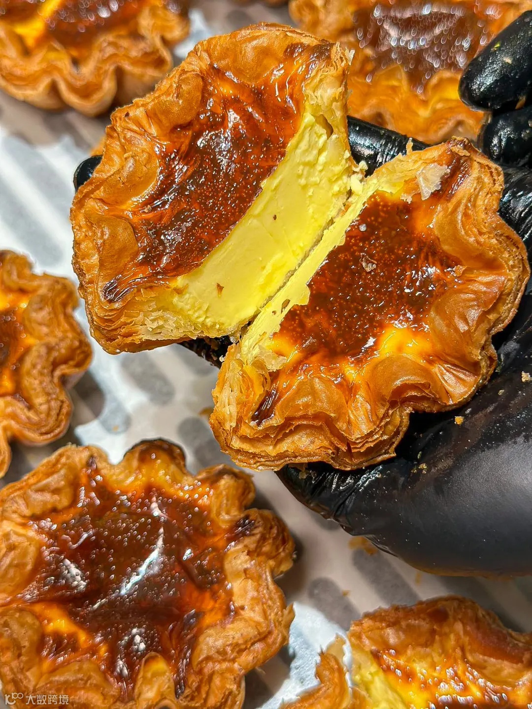 吃起来皮薄酥脆,外壳酥到掉渣,蛋挞心饱满,蛋滑细腻,超厚内馅很足料,吃着是带点焦糖的香甜味,甜而不腻。