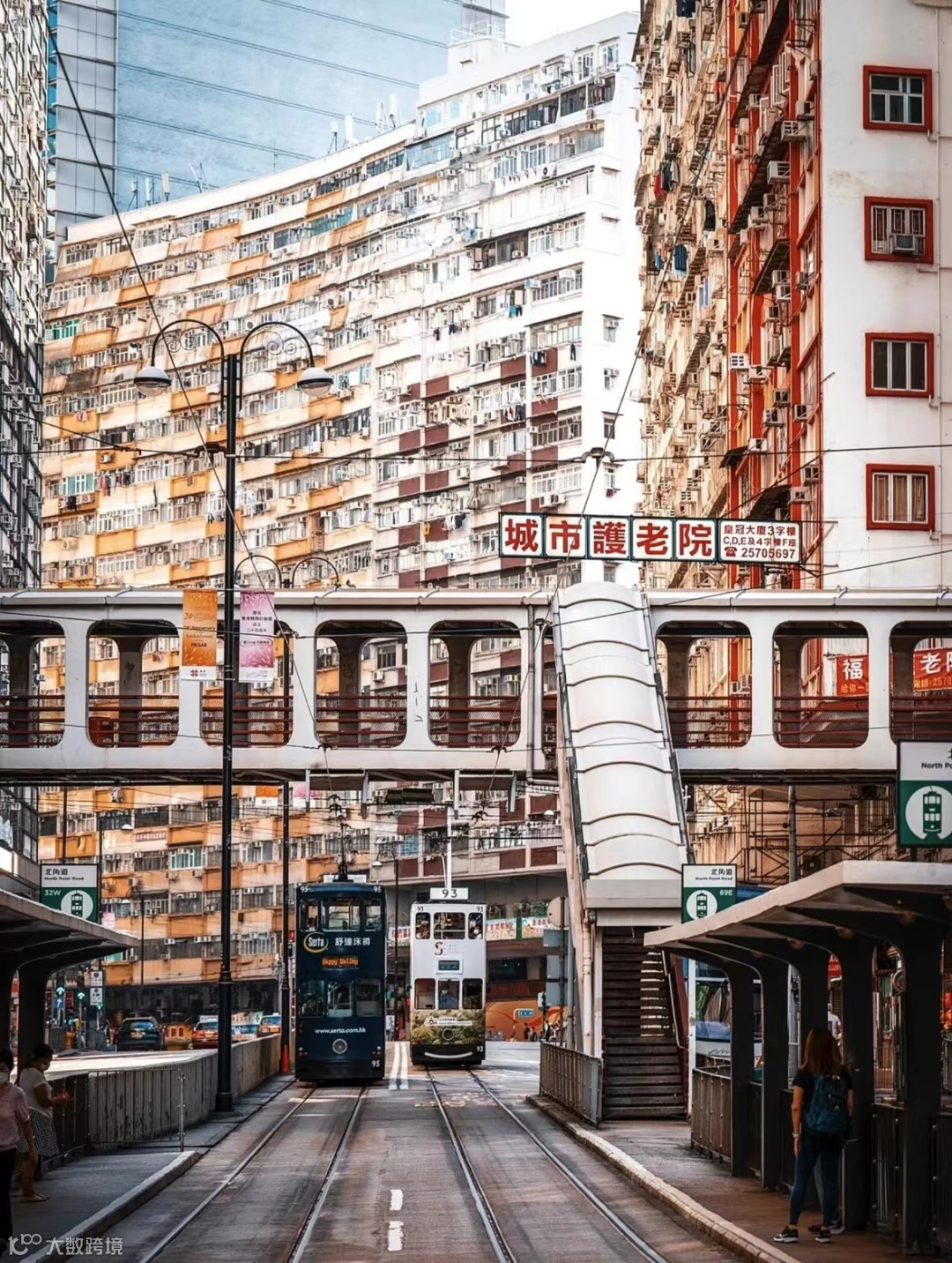 花园街也是必打卡的地方,到了花园街不要往里走,看到岔路口的天桥就坐扶梯上去,这个机位可以拍2个方向的街道。